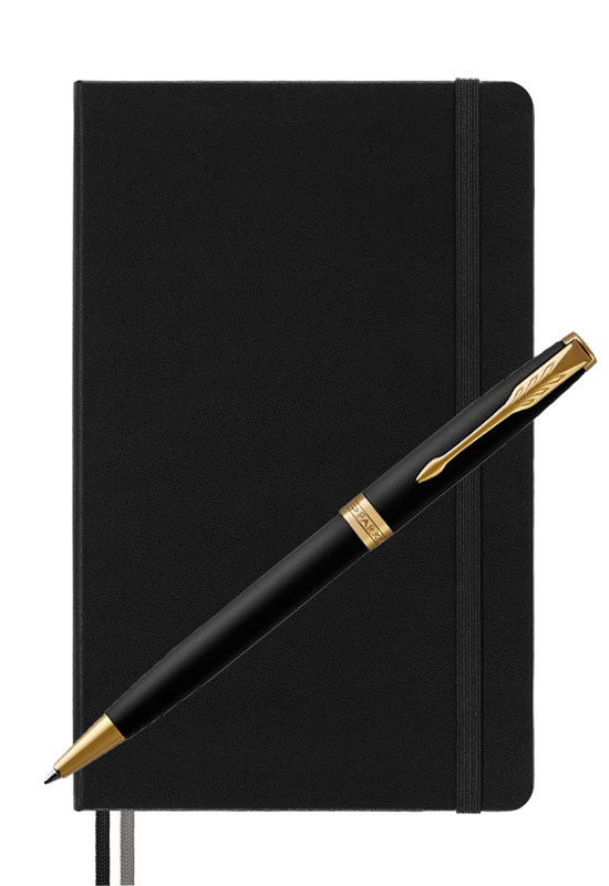 Parker Sonnet Matte Black Gt Moleskine от официального дилера Parker в Йошкар-Оле. Вы можете дополнительно заказать гравировку, которая подчеркнет Вашу оригинальность и придаст памятность статусному подарку. Все ручки Паркер поставляются в фирменном футляре.