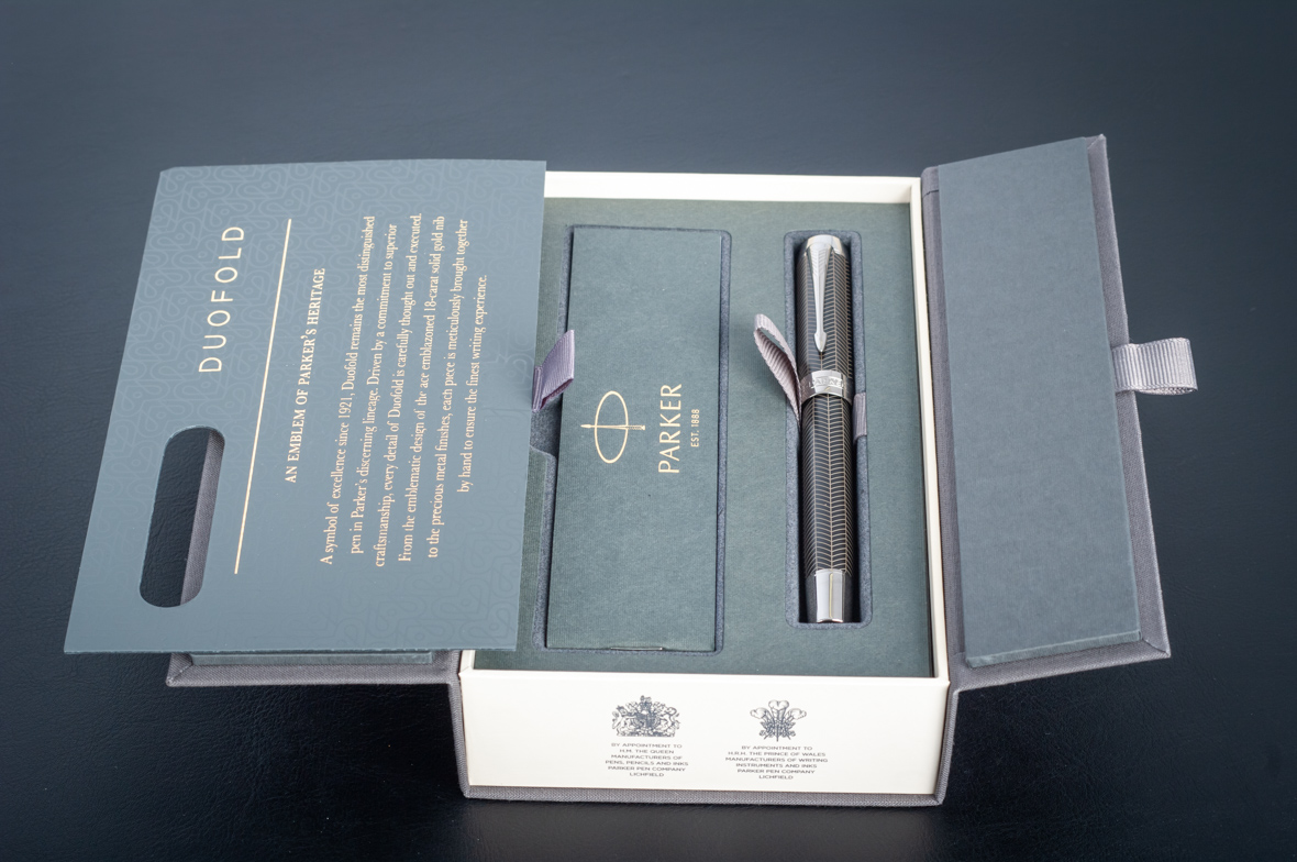 Ручка роллер Parker Duofold Prestige Centennial Black Chevron CT от официального дилера Parker в Йошкар-Оле. Вы можете дополнительно заказать гравировку, которая подчеркнет Вашу оригинальность и придаст памятность статусному подарку. Все ручки Паркер поставляются в фирменном футляре.